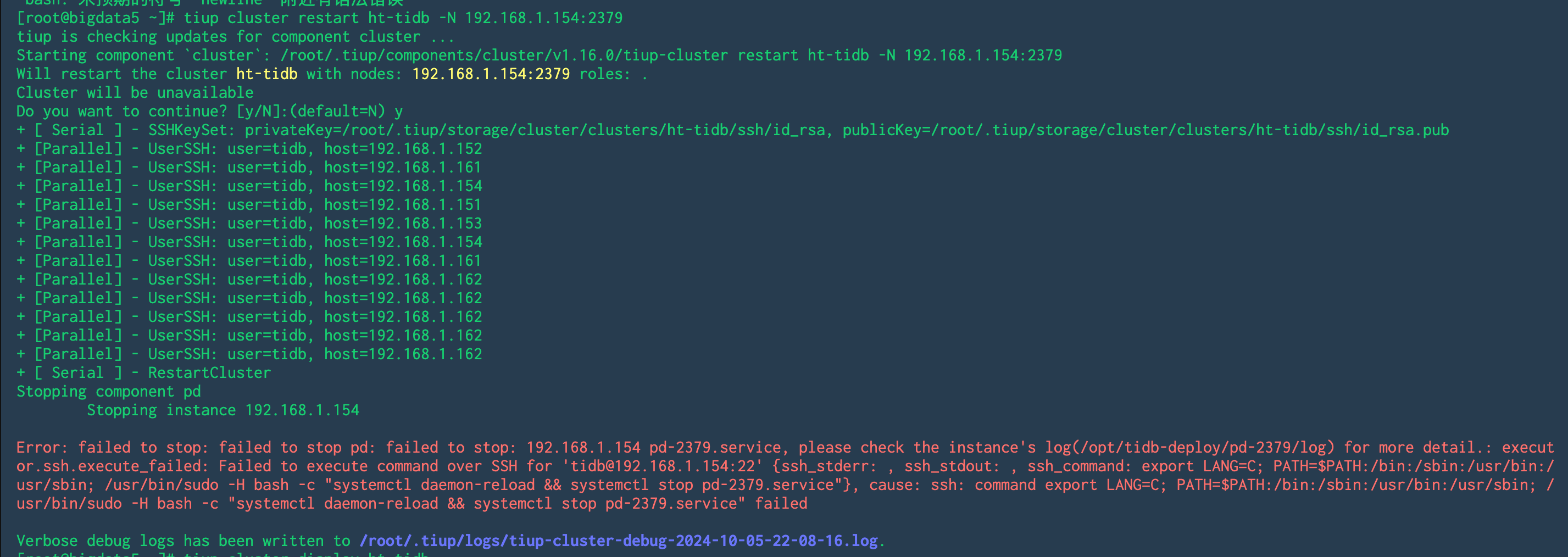 tiup cluster restart ht-tidb -N 192.168.1.154:2379