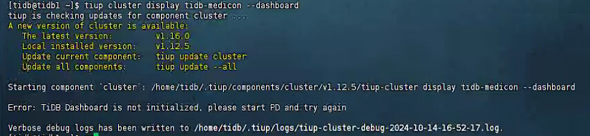 还有个现象不知道跟这个问题有没有关系,就是访问原pd端口的dashboard时,提示Dashboard is not started. 命令行查看时提示如下: