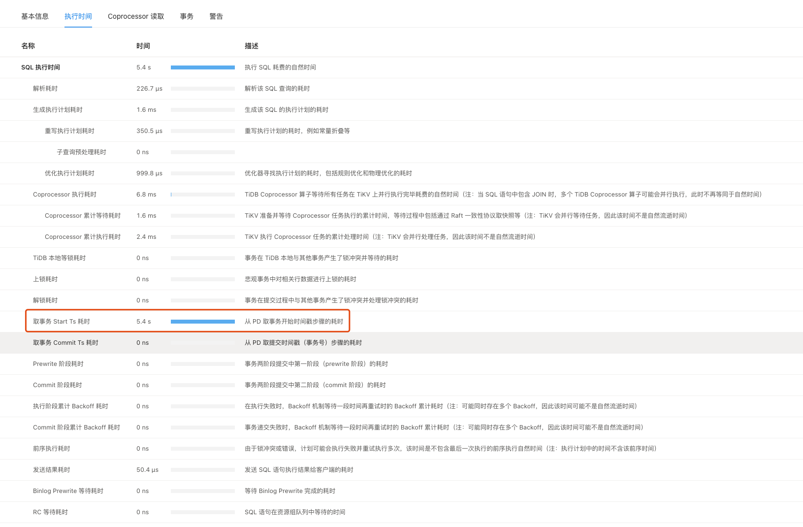 请教一下为什么从 PD 取事务开始时间戳步骤的耗时很长, 另外一个sql Coprocessor 执行耗时需要2.5s?