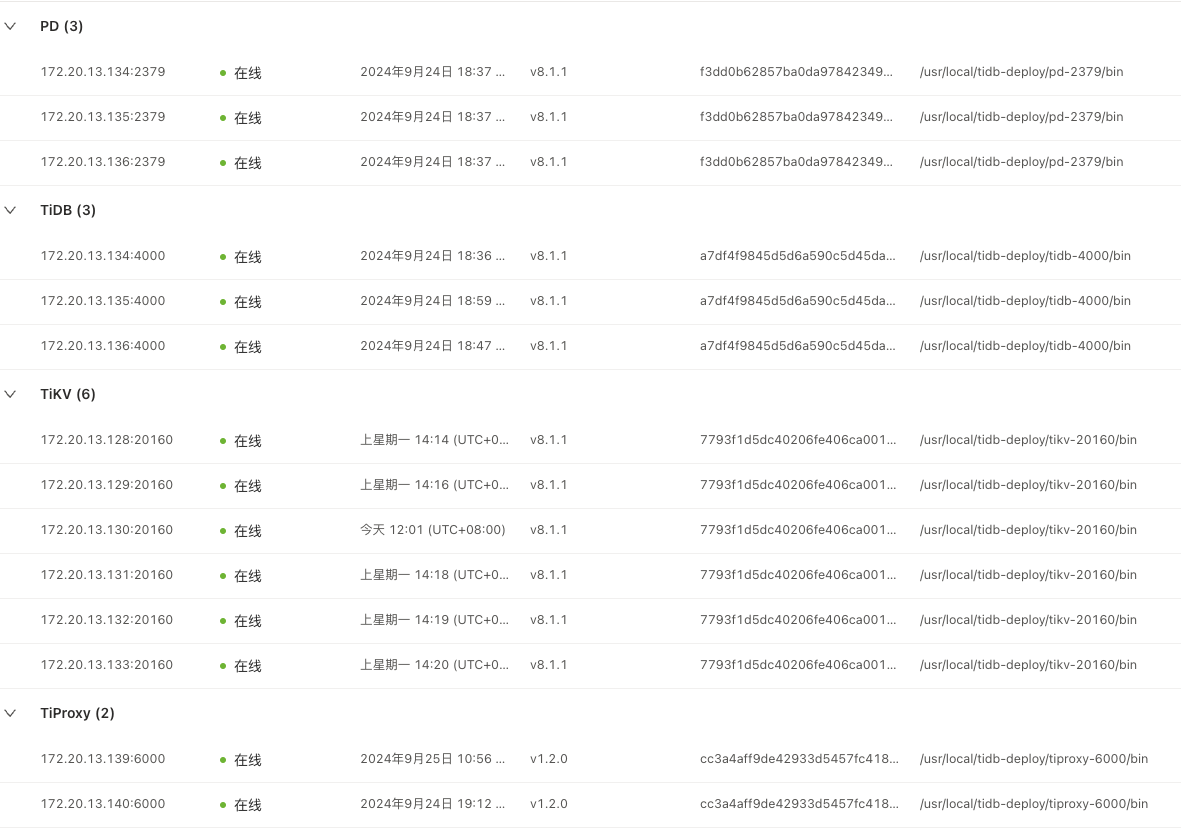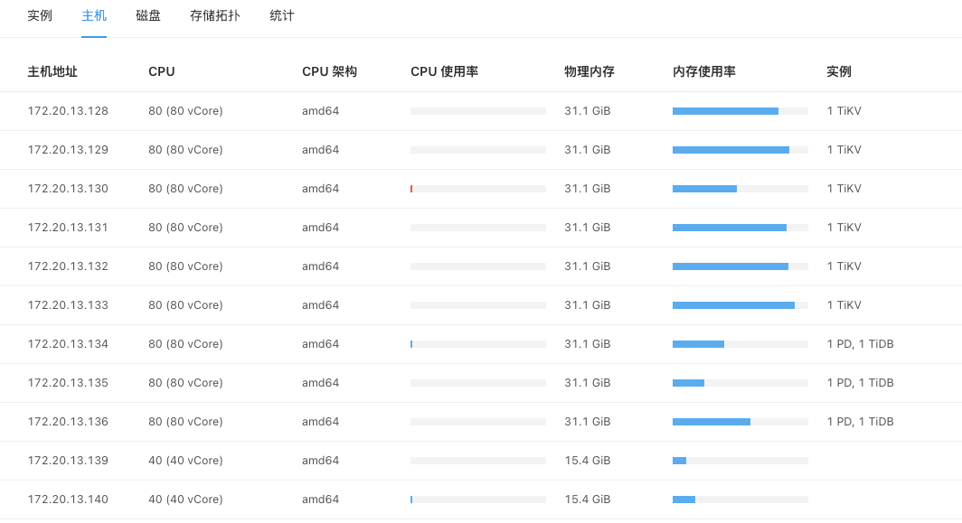 【资源配置】进入到 TiDB Dashboard -集群信息 (Cluster Info) -主机(Hosts) 截图此页面