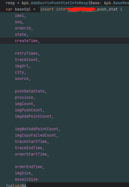 代码中只插入了如下字段: