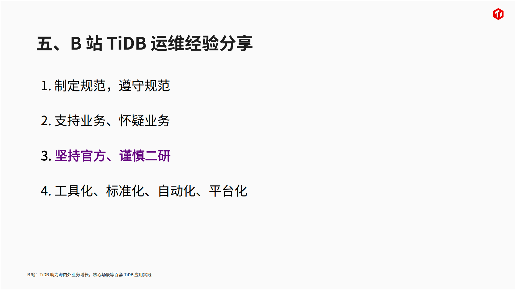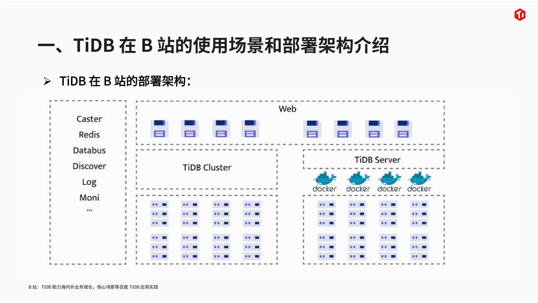 资料下载:赵月顺老师-B 站:TiDB 助力海内外业务增长,核心场景等百套 TiDB 应用实践.pdf (3.2 MB)