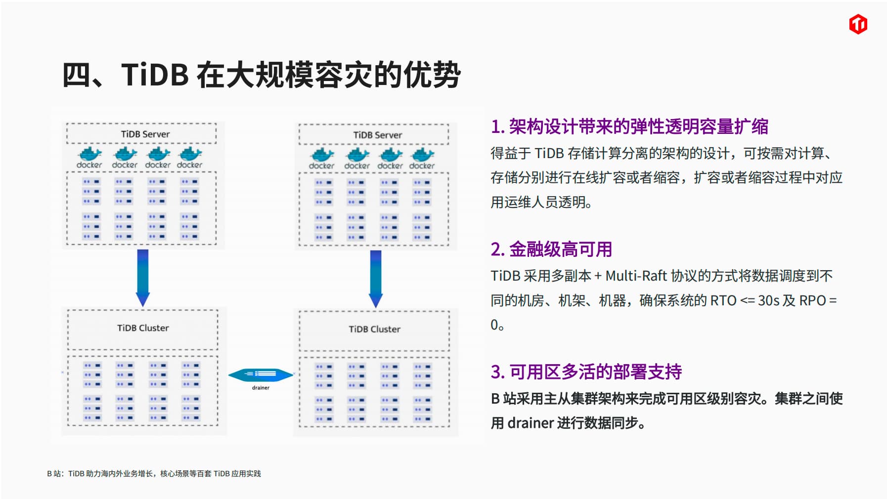TiDB在B站的应用带来了架构设计的弹性、金融级高可用性和多活部署支持。