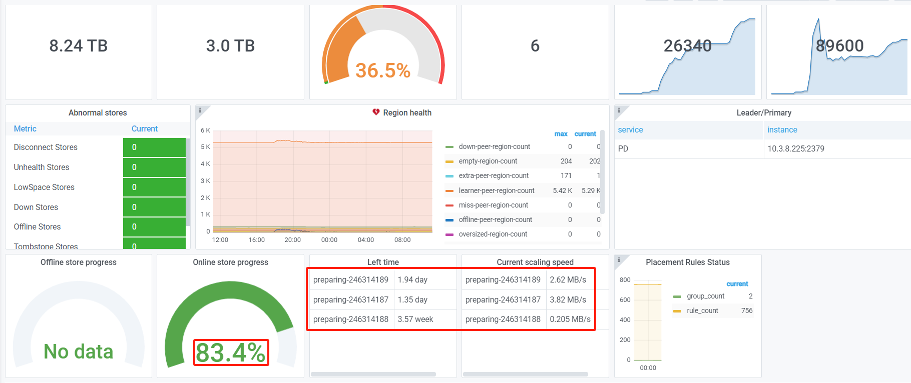 【遇到的问题:问题现象及影响】对现有tidb集群进行3节点的tikv扩容到6节点tikv,保留3副本不变。扩容相关的命令执行一切正常。