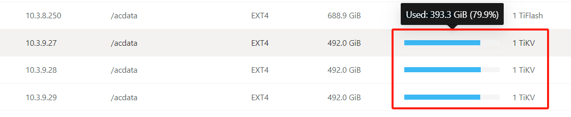2.新扩容的2个tikv节点,tikv目录占用的磁盘空间大小一致