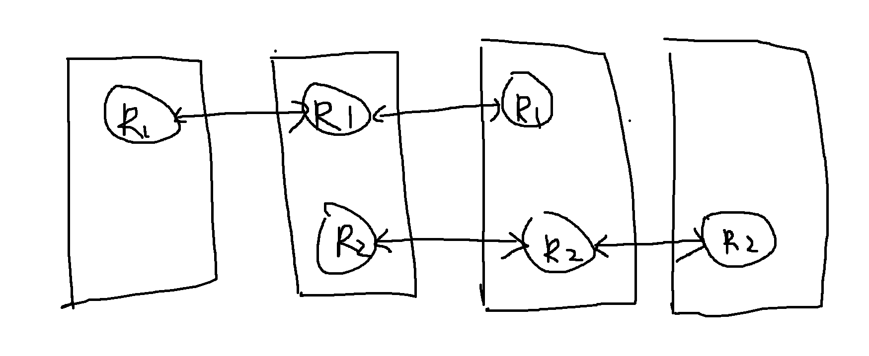 如下图,region1->region2 进行 merge,但在 store4 上不存在 region1,store1 上不存在 region2,这种情况下 merget target 是 region2,store1 和 store4 会发生什么。