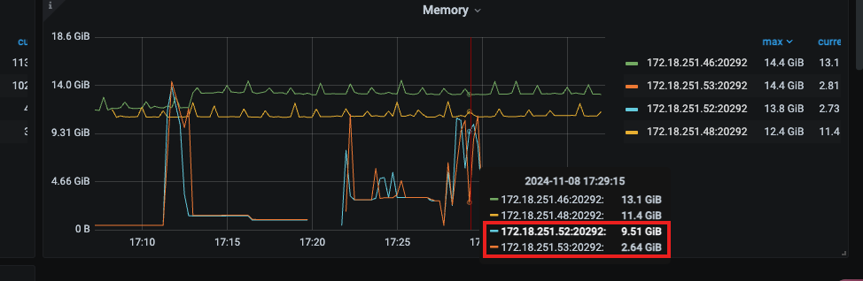 但是看监控实际上两个 Compute 节点最大内存使用才不到 10 GB。所以感觉 TiFlash 的内存预估不准,容易将本来能跑成功的语句拦截了。