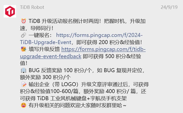 如果你不想学习tidb相关的知识,单纯想要积分获取的社区小礼物,严格来说也不是不行。这起码是对社区礼物品味的一种认可。而且我相信随着你对tidb的了解,是会对它产生兴趣的。