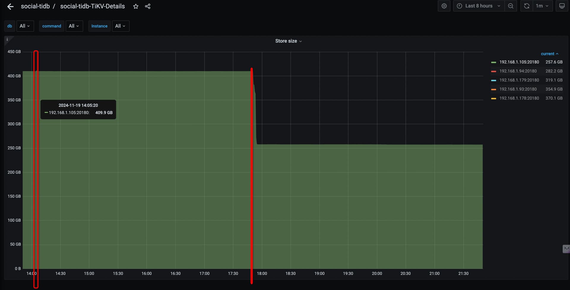 可以看看 tikv 监控里 gc safepoint 的推进情况是不是有段时间卡住了。