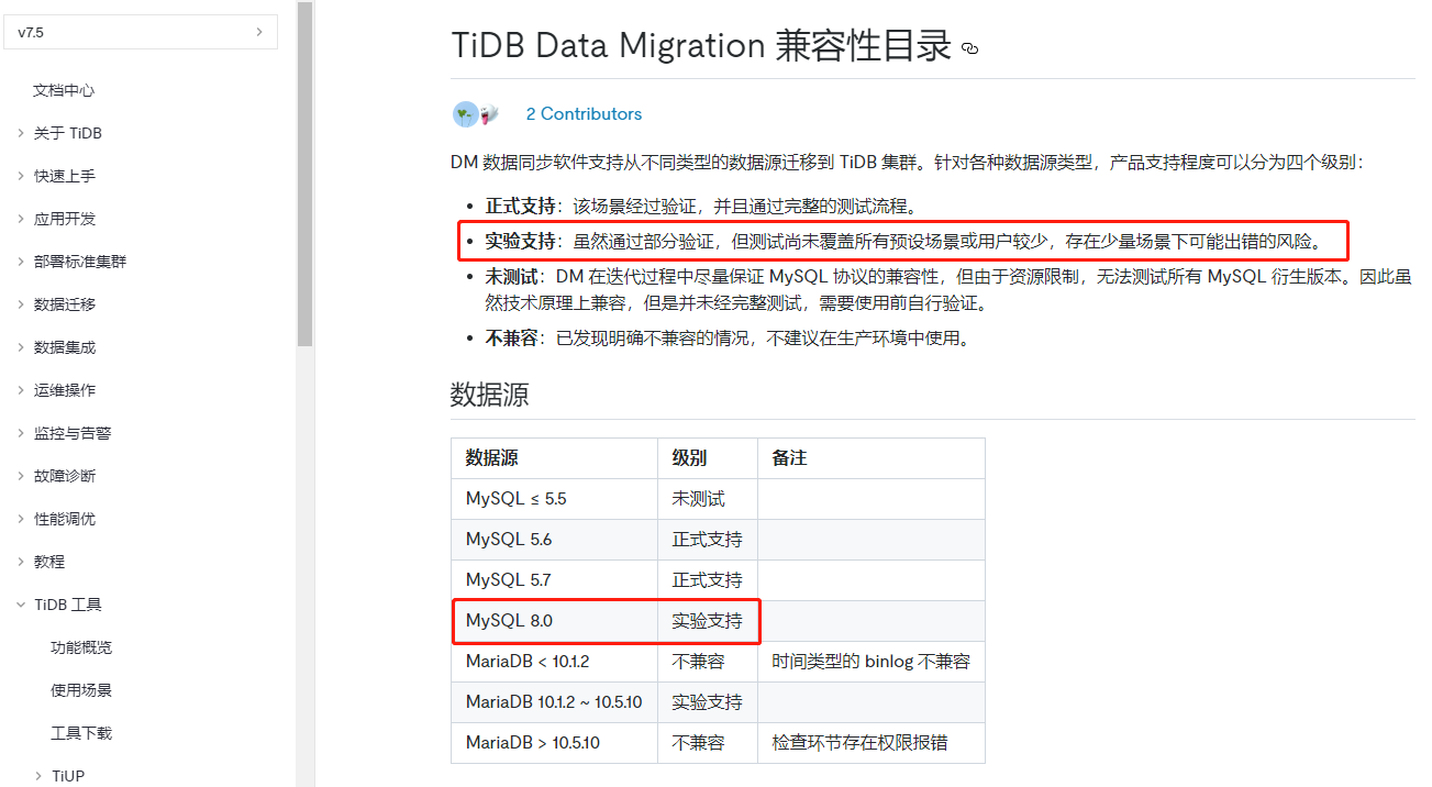 恩。我看到8.1是没有实验特性了。但是我目标端tidb准备用7.5 。想着DM也使用7.5版本。