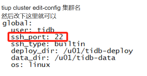 【 TiDB 使用环境】生产环境 /测试/ Poc 【 TiDB 版本】6.1 【复现路径】因各种原因,22端口要被替换掉 【遇到的问题:问题现象及影响】因各种原因,22端口要被替换掉,想知道具体影响有哪些,我直接修改ssh的端口号,然后替换tiup 构造文件,逐步更新配置,是否有其他影响。感谢