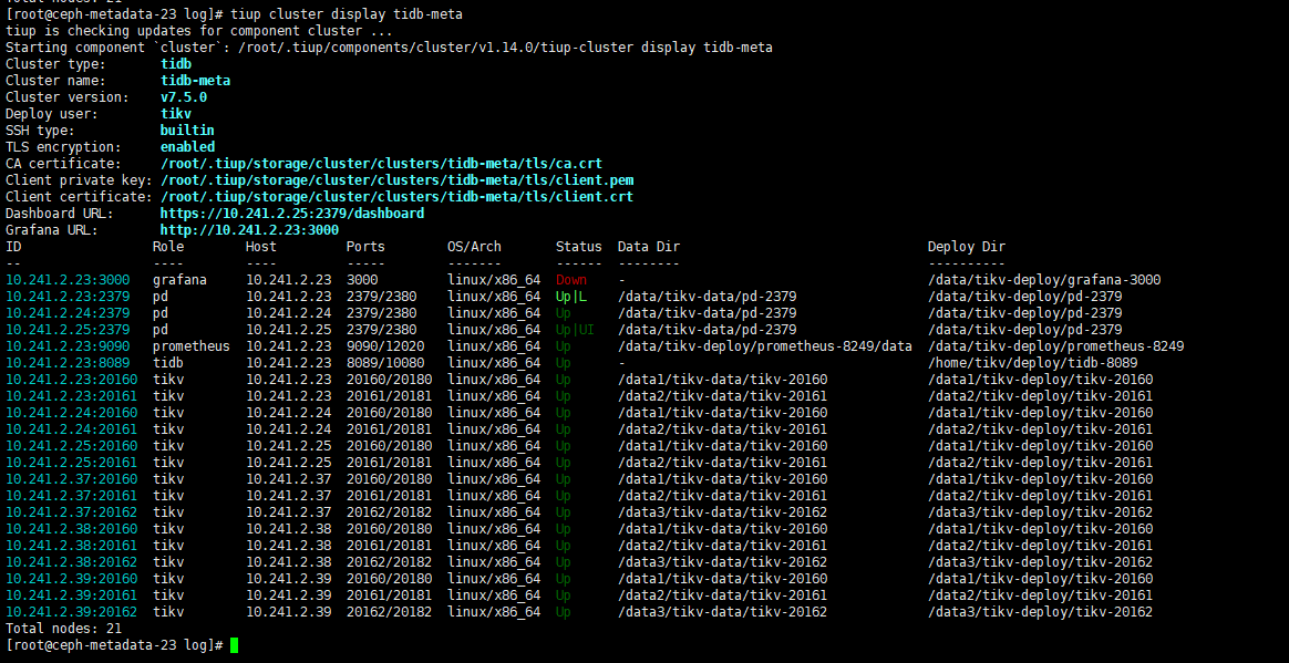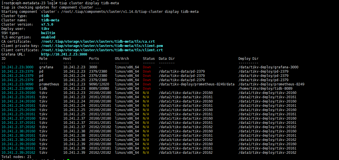 当前使用的是TIKV 集群,是用tiup 部署的,集群状态如图: