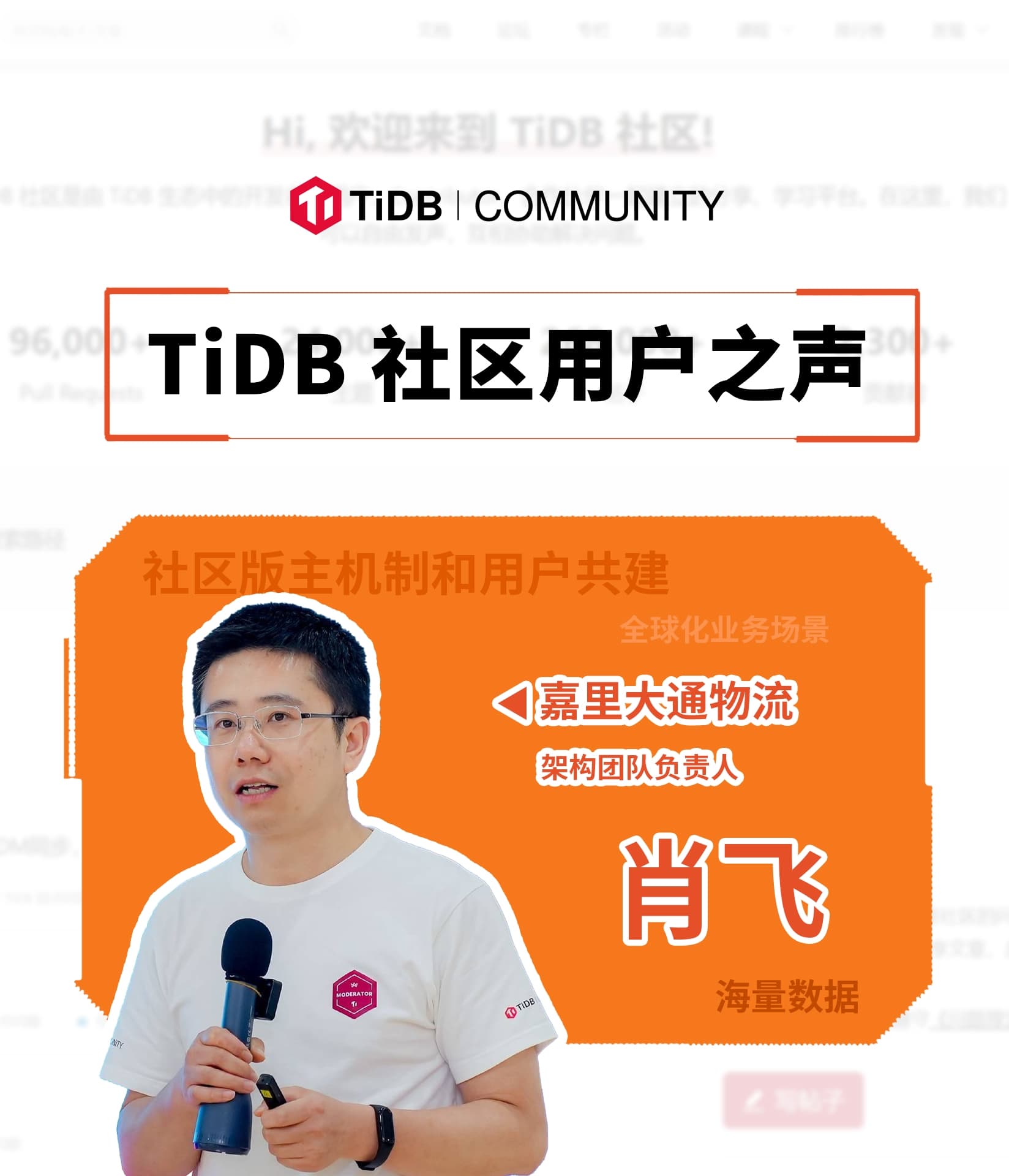 本期社区用户之声,肖飞老师将和我们一起聊聊海量数据下全球化业务场景,以及 TiDB 的新版本使用~
