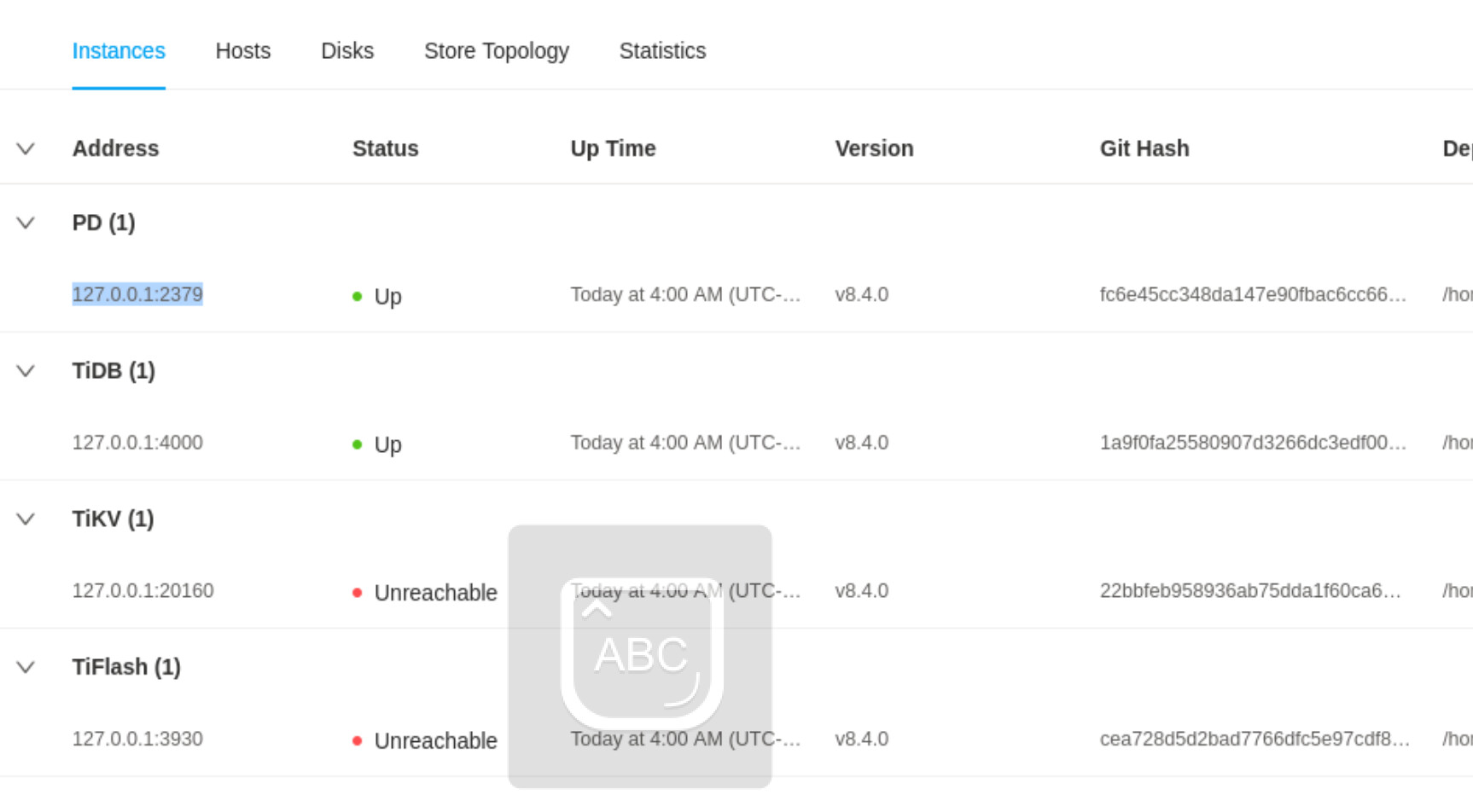 Start tidb instance: v8.4.0