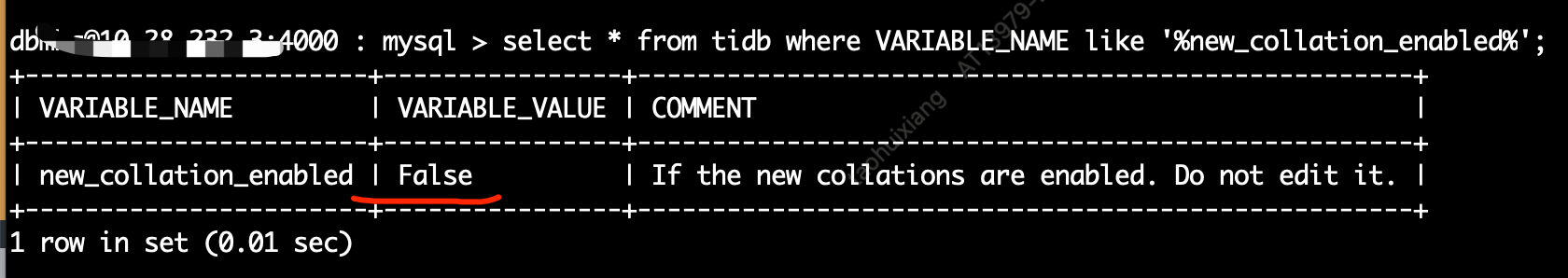 select * from mysql.tidb where VARIABLE_NAME like '%new_collation_enabled%';