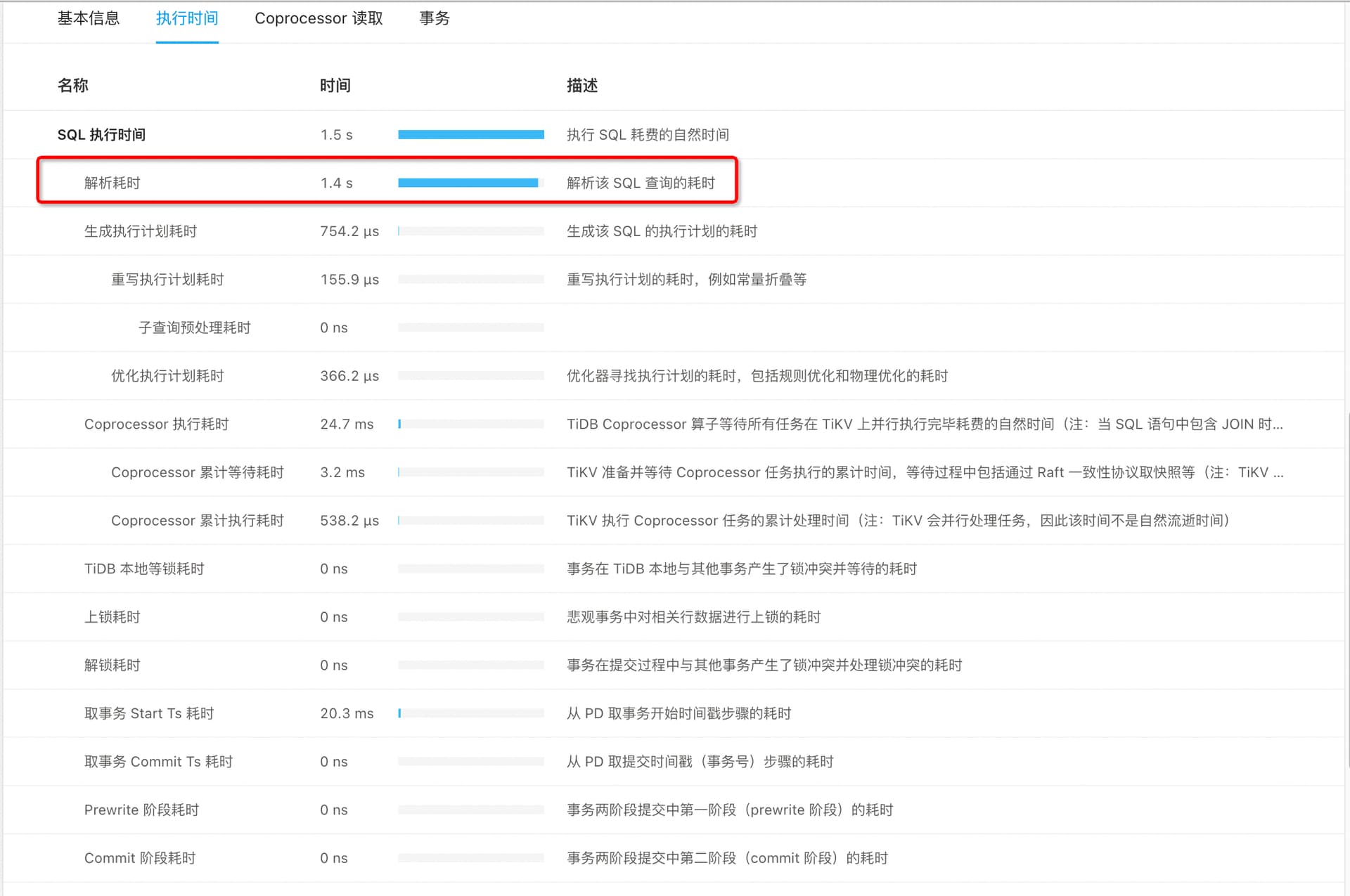 执行时间显示 其中解析耗时 1.4s