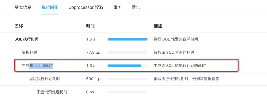 该语句的目前只发现这一个,后续因为影响业务,已经切换到MySQL库了。倒是发现类似其他的问题,比如 “生成执行计划耗时”也有很慢的情况