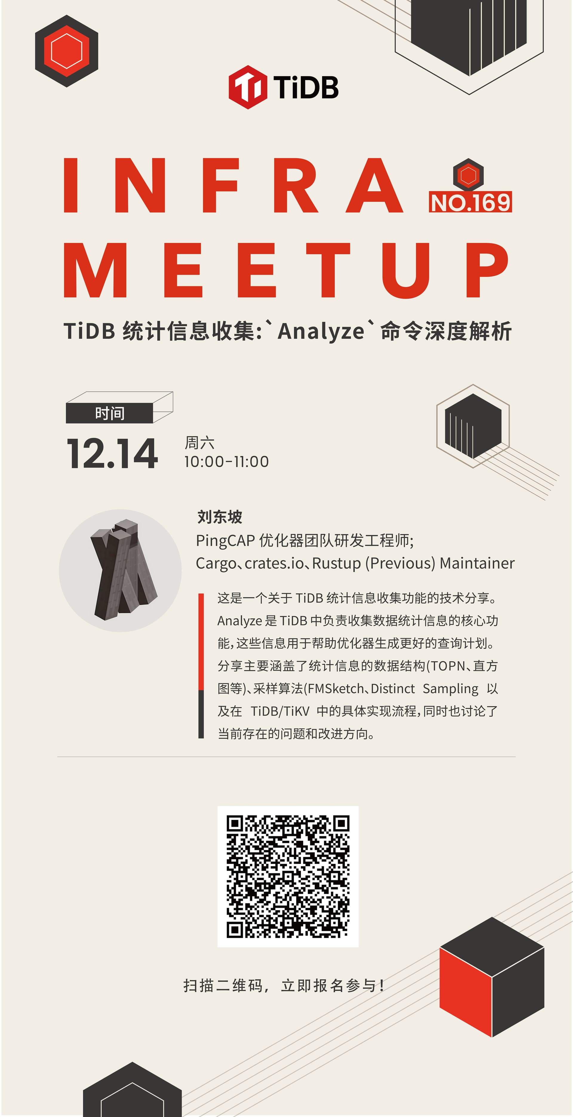 本期活动我们邀请到了 PingCAP TiDB 优化器研发工程师刘东坡老师,为我们分享: