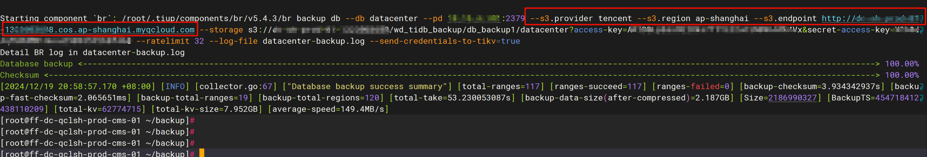 –storage “s3://$bucket/wd_tidb_backup/db_backup1/$db_name?access-key=$ak&secret-access-key=$sk”