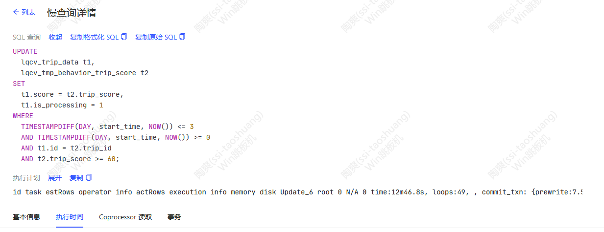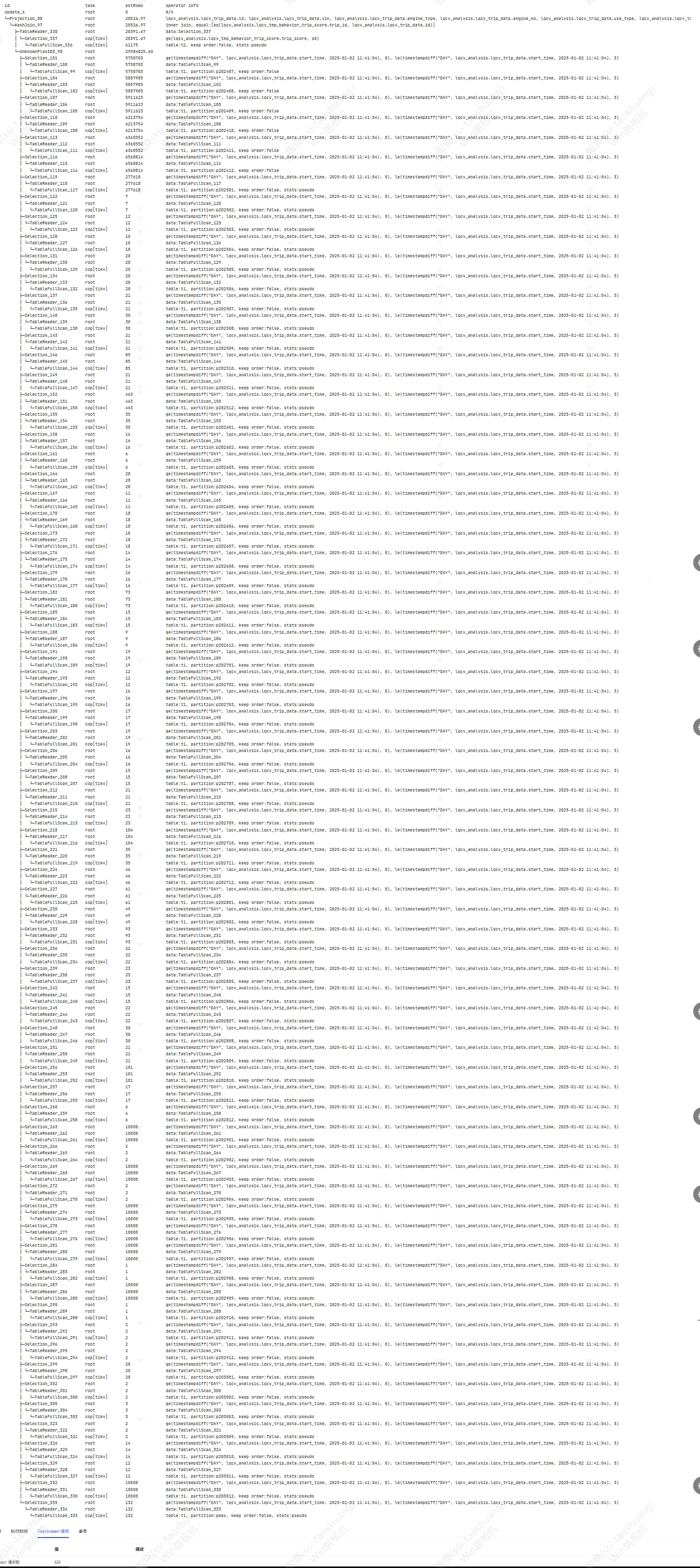 2.查看索引是否需要重建,比如你的 lqcv_trip_data表的id字段和 lqcv_tmp_behavior_trip_score的 trip_id 字段