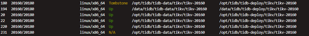 【复现路径】缩容完tikv231节点后,状态为N/A,确认已经没有数据了。