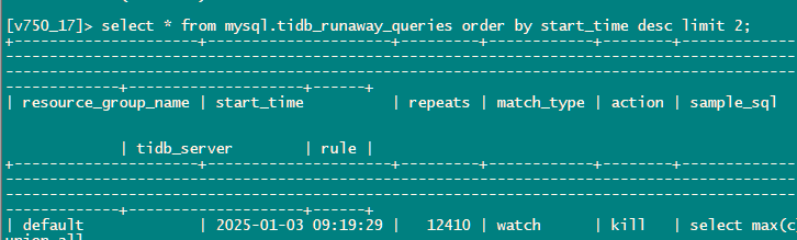 补充:tidb_runaway_queries里显示的没问题