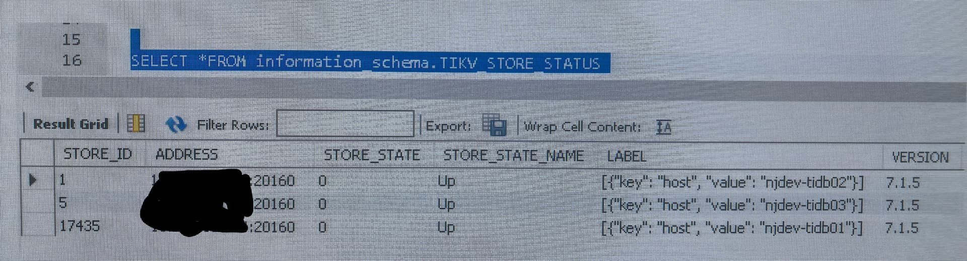 select store_id,address,label from information_schema.tikv_store_status 看下tikv配置label了没