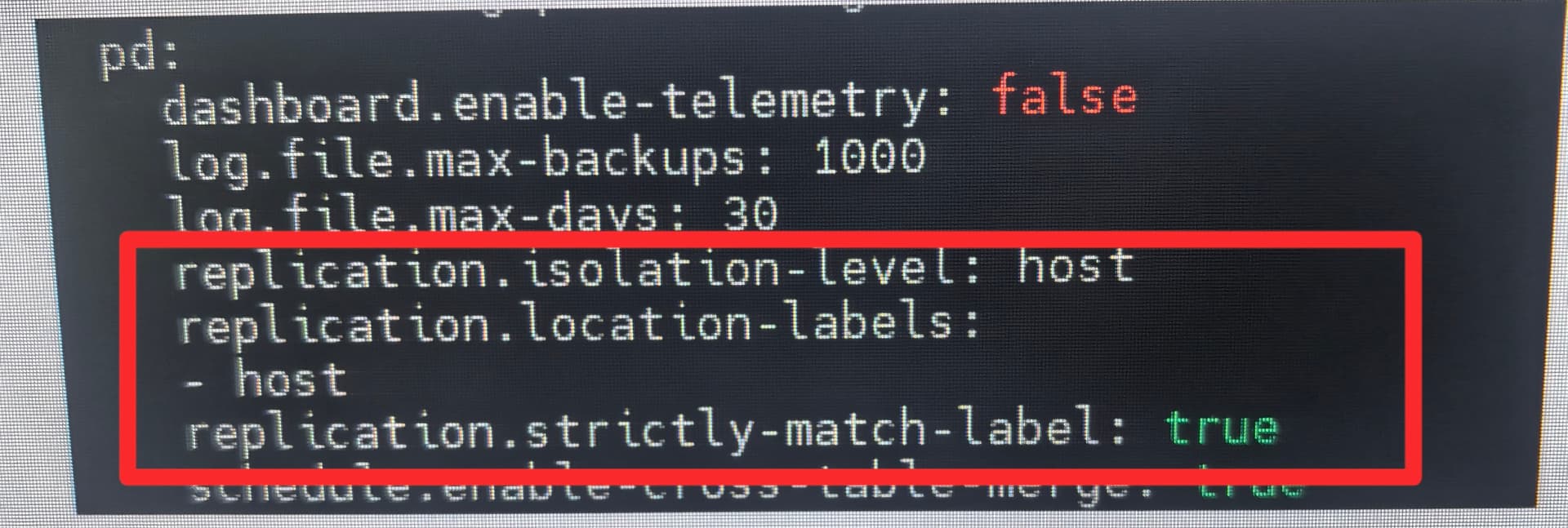 pd-ctl config show 看 isolation-level 和 location-labels 确实都为空,奇怪了, 配置文件都设置了啊, PD的配置文件也都是正常能看到相关配置的,为什么没生效呢?