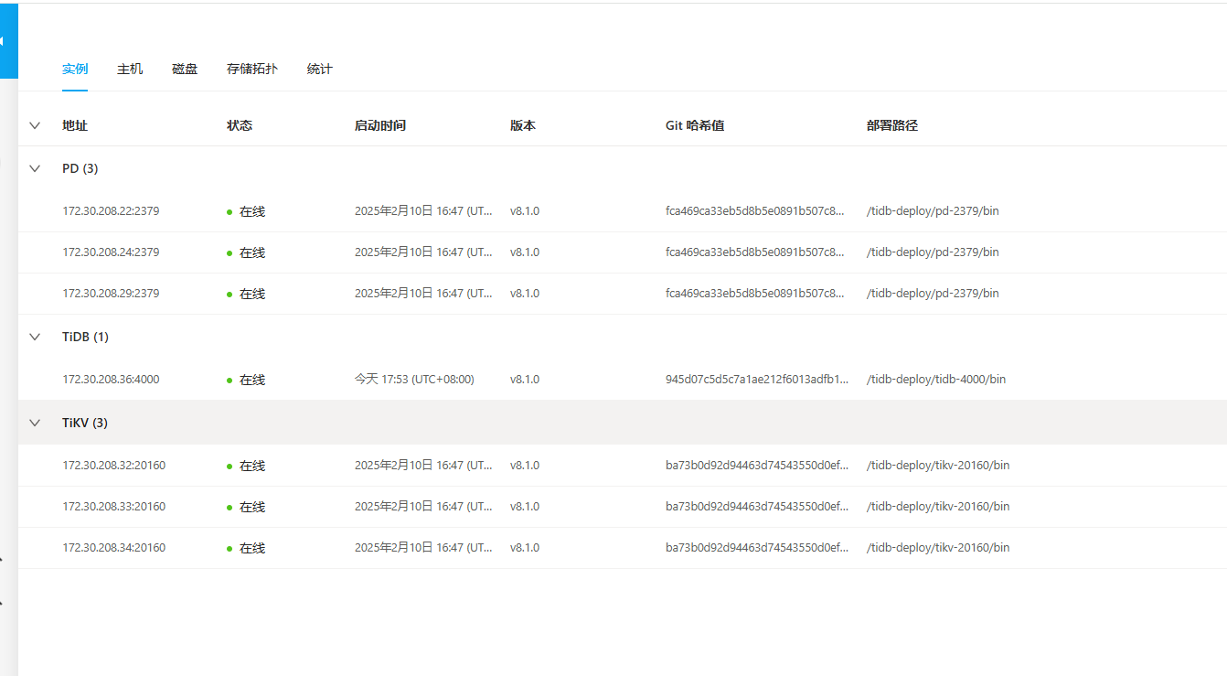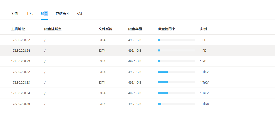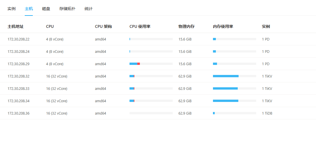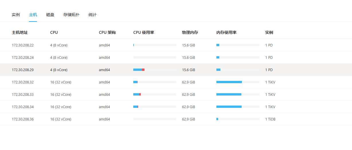 【资源配置】进入到 TiDB Dashboard -集群信息 (Cluster Info) -主机(Hosts) 截图此页面