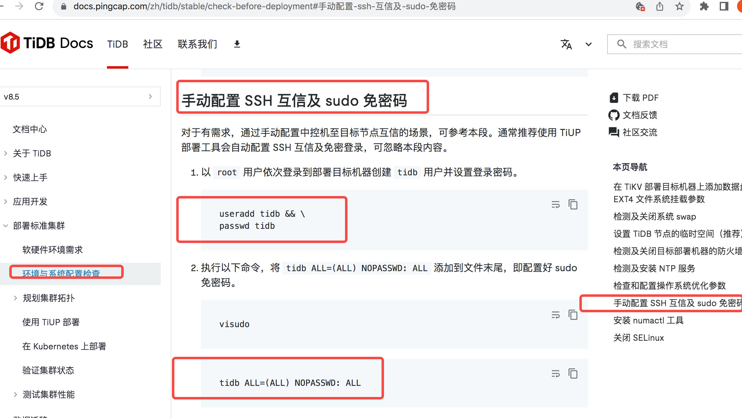 问题描述:配置互信用tidb用户, topology.yaml 配置的tidb用户,tidb配置了sudo权限,安装集群脚本用root用户报错,这个部署命令用root用户是不是不合理? - 出现的页面:链接+截图