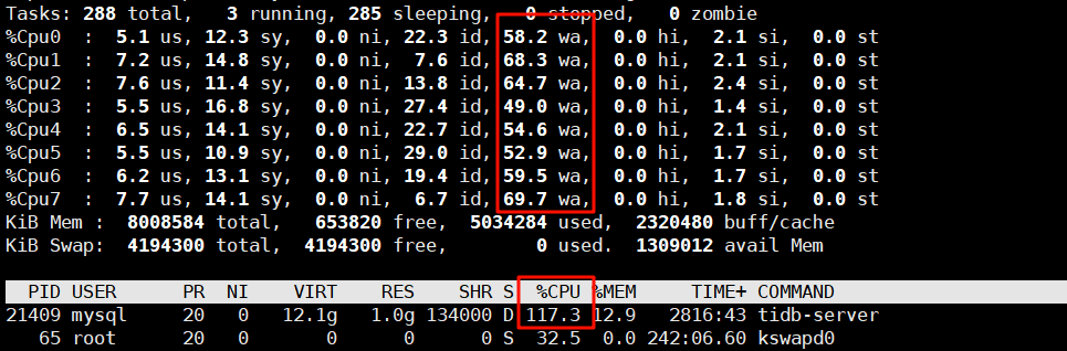wa会变高,感觉你大概率是混合部署,是tikv和tidb部署在一起了嘛?