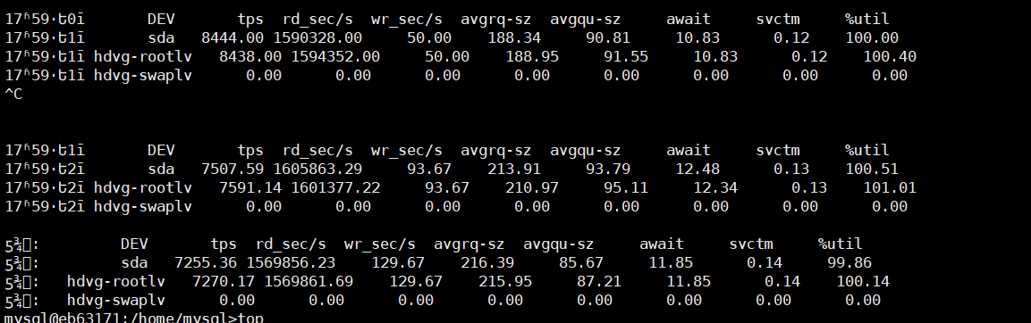 cpu并没有满哦。就是系统的wa会突然变得很高