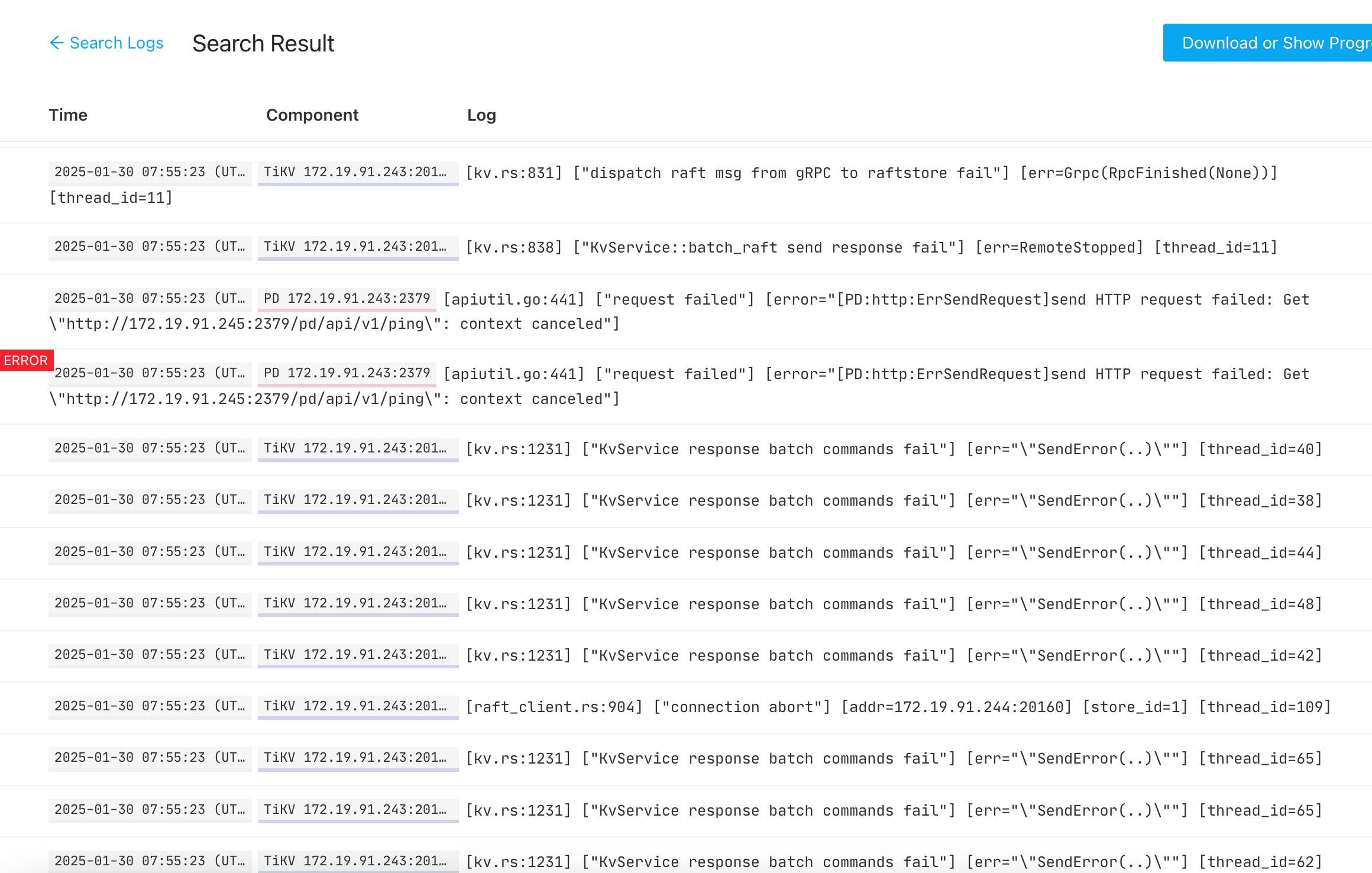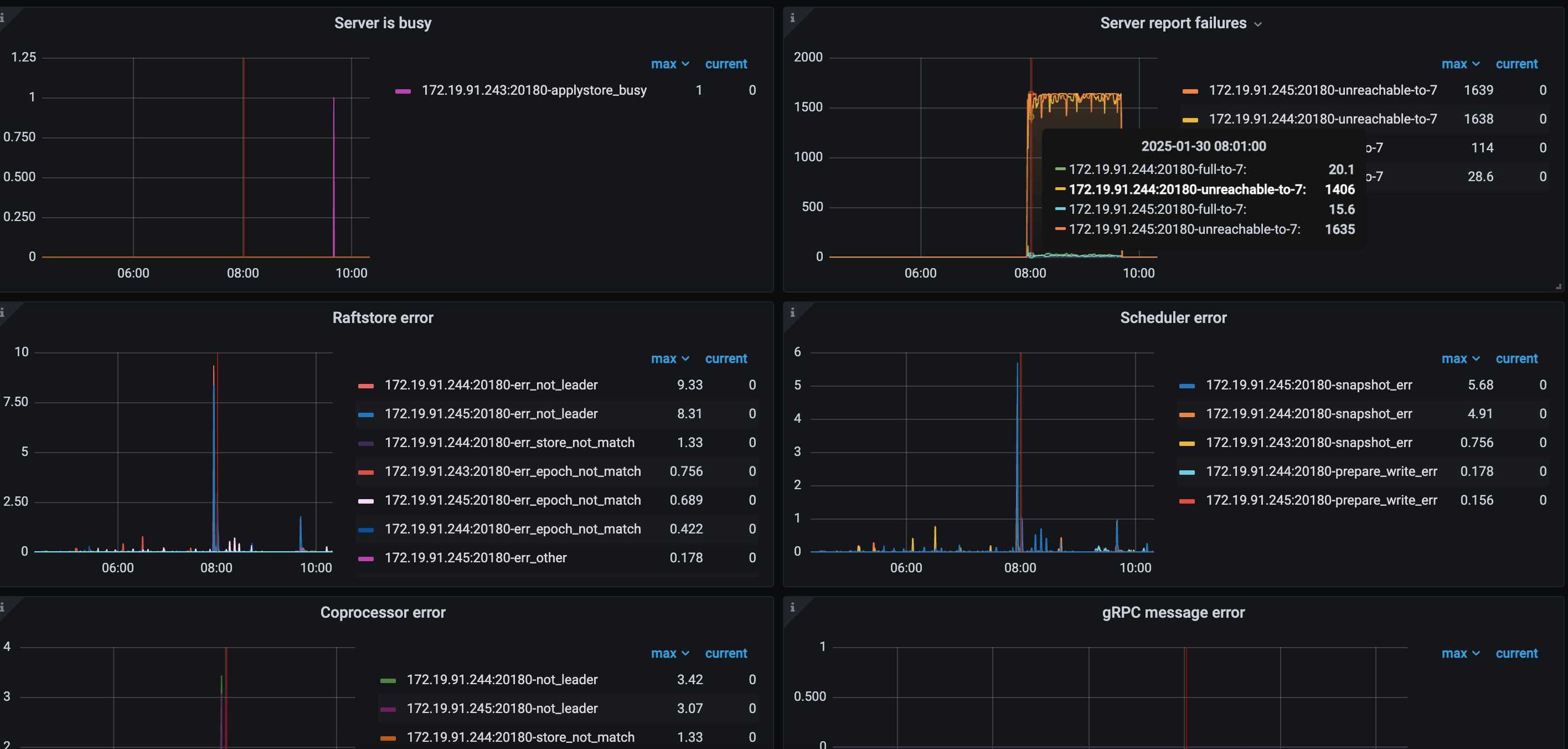 在早上8:00左右服务宕机,tidb一台服务(243)不可用
