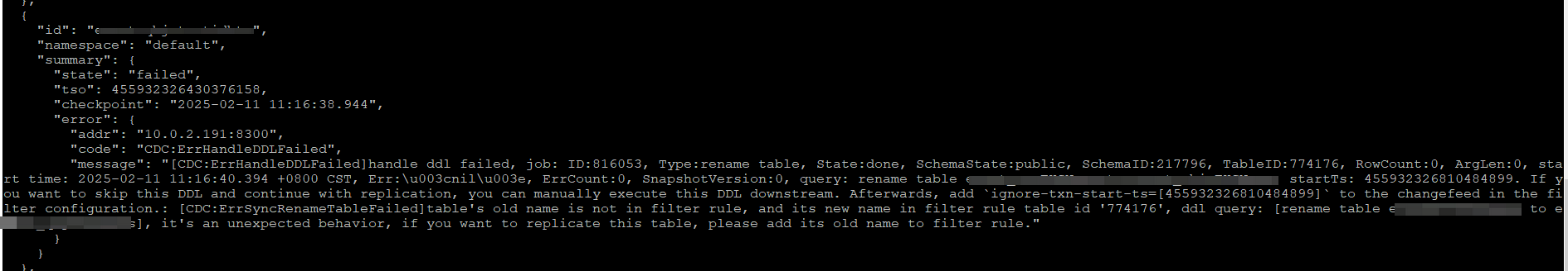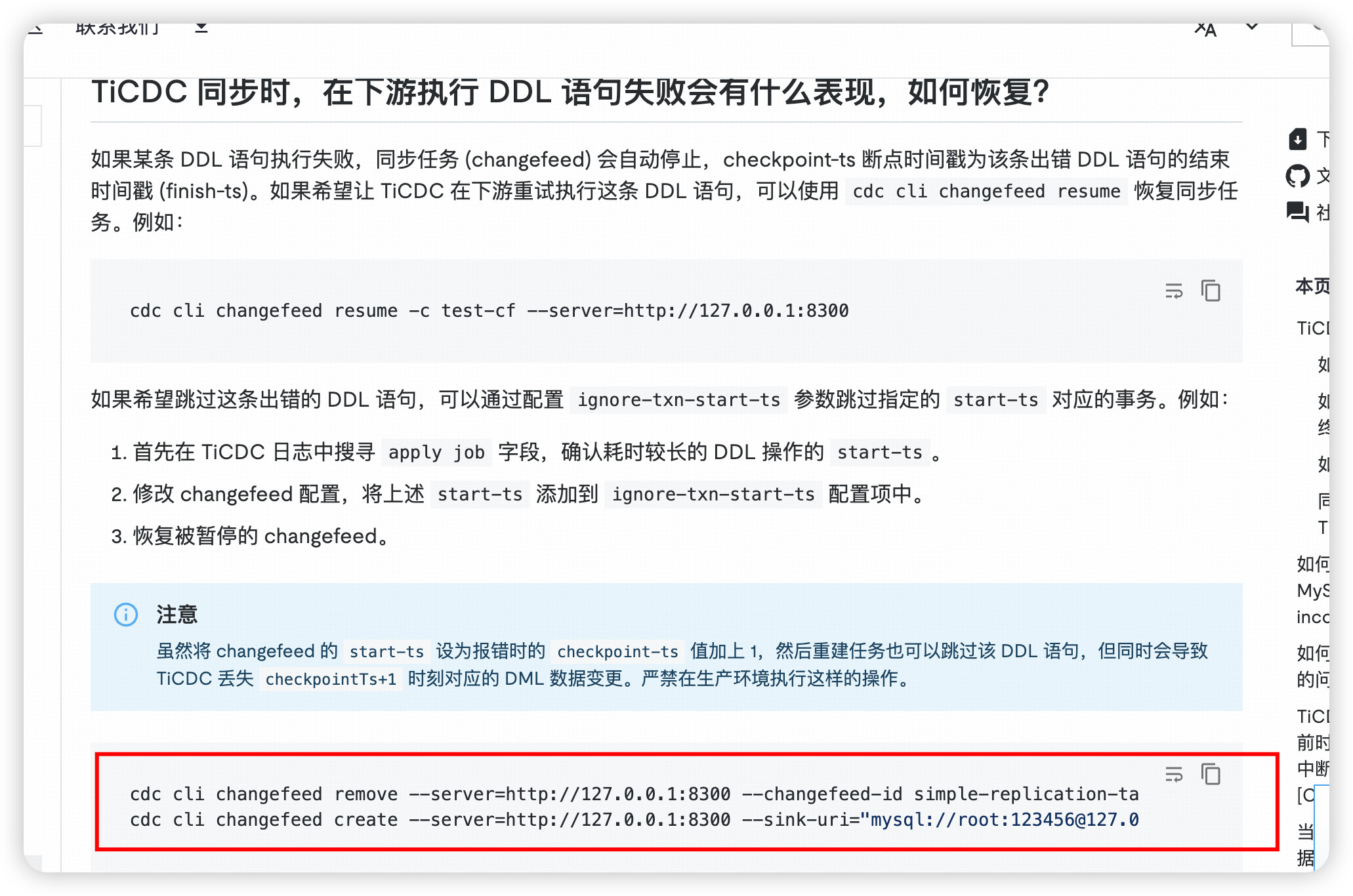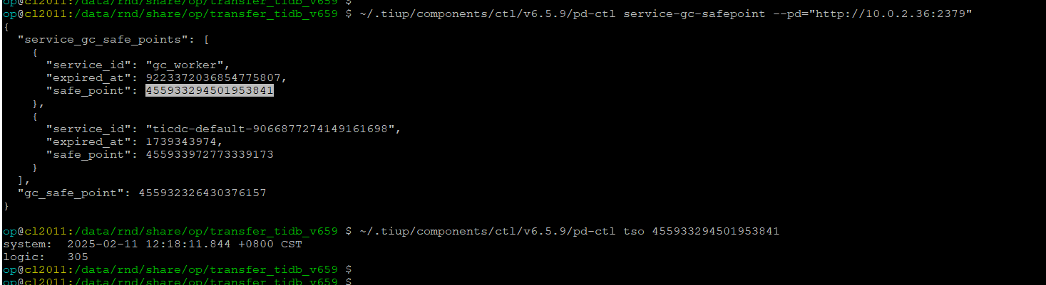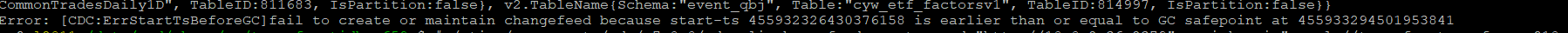 Error: [CDC:ErrStartTsBeforeGC]fail to create or maintain changefeed because start-ts 455932326430376158 is earlier than or equal to GC safepoint at 455933294501953841