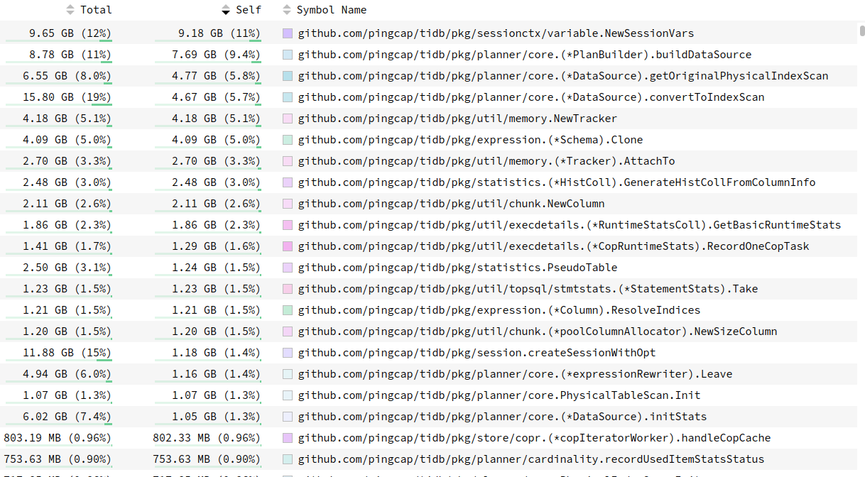 NewSessionVar 占了比较高的比例,调低应用连接数后,内存也无明显变化CPU看着gc占了比较大的比例