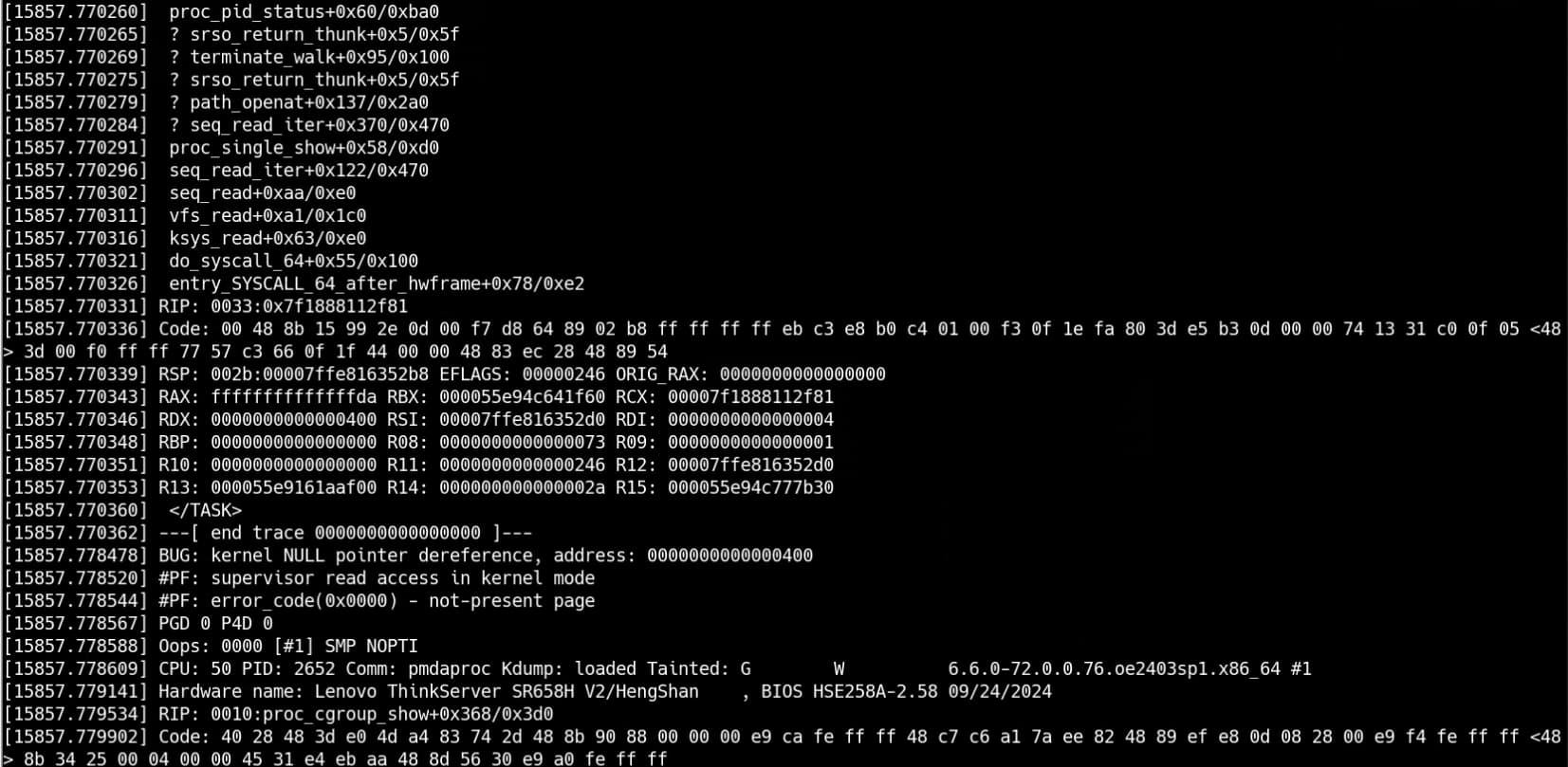 看着是proc_cgroup_show引起的问题,估计只能等补丁修复了。