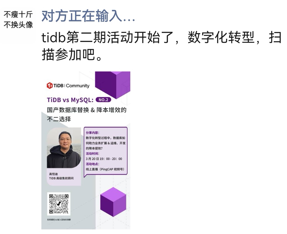 扫码预约 PingCAP 视频号直播,获得开播提醒!
