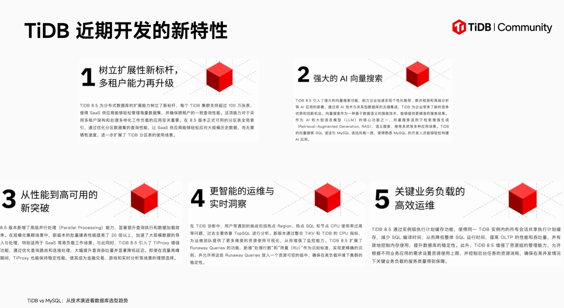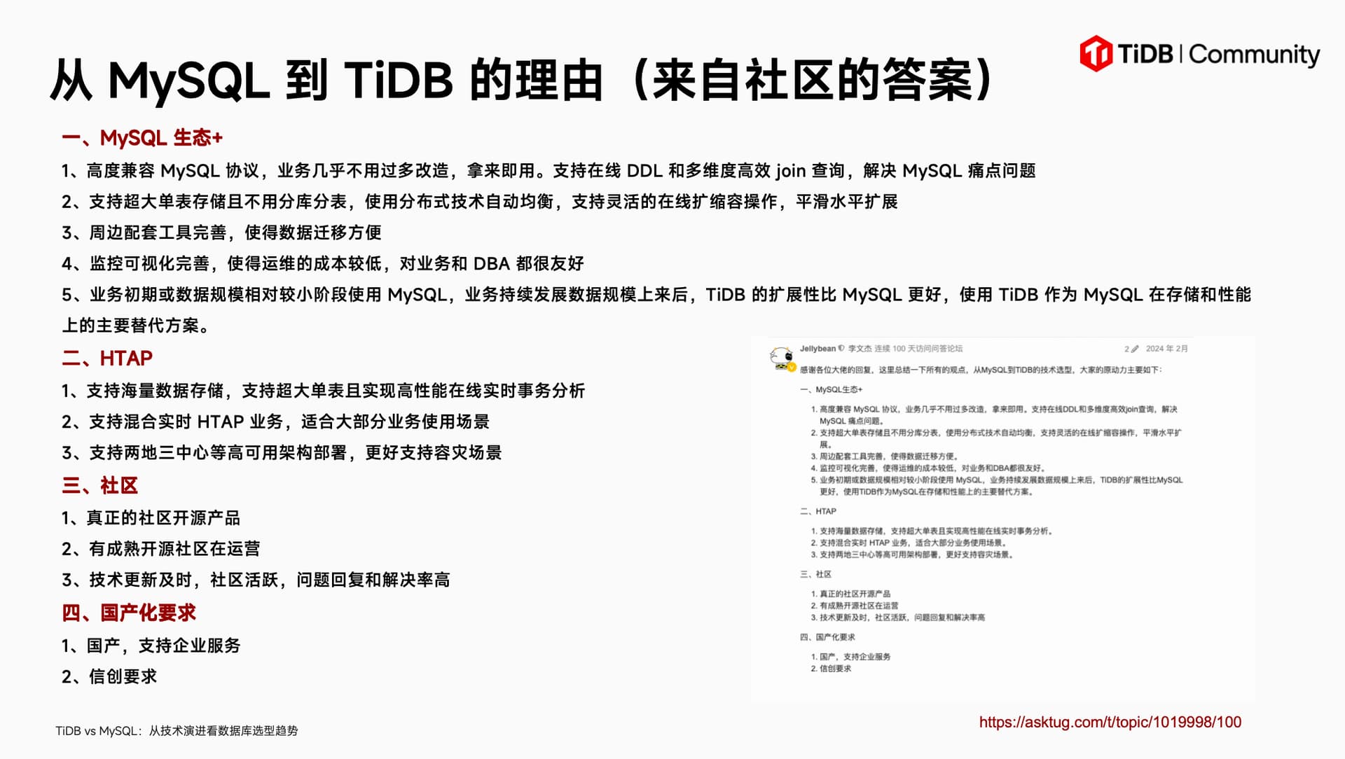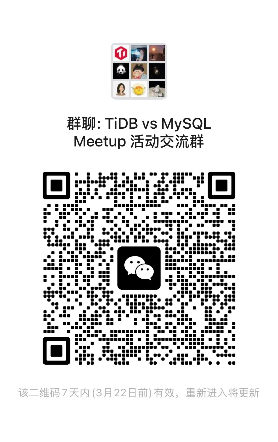 PPT 下载:2.20 TiDB vs MySQL 线上 Meetup 第一期 PPT.pdf (7.2 MB)