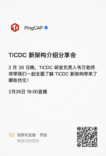 扫码预约 PingCAP 视频号直播,获得开播提醒!