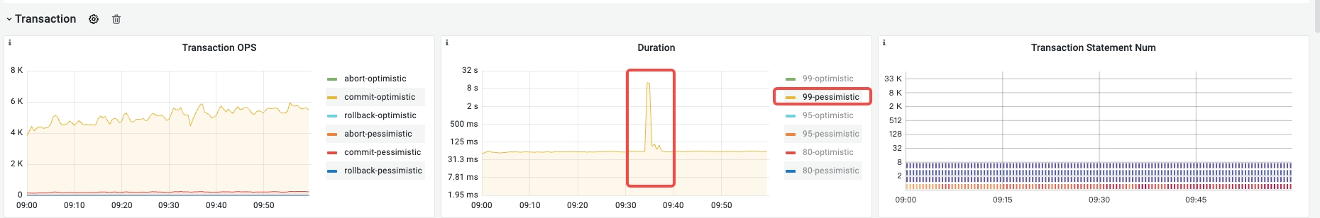 出现问题的时间点,集群负载正常,怀疑是锁原因导致SQL执行耗时变长。tikv节点锁冲突导致业务出现读写超时【代码中读操作与写操作存在悲观事务与乐观事务的混用的情况】,如果全部调整为显示事务的方式,是否可以解决该问题。