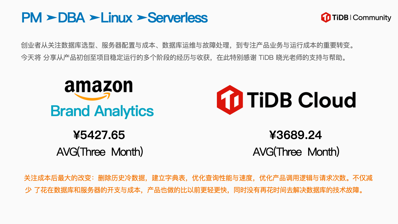 亚马逊品牌分析数据专家用实际创业经历展示 TiDB Cloud 如何助力节省 5 倍云资源!这也是 TiDB Serverless 用户在国内平台的首次分享!