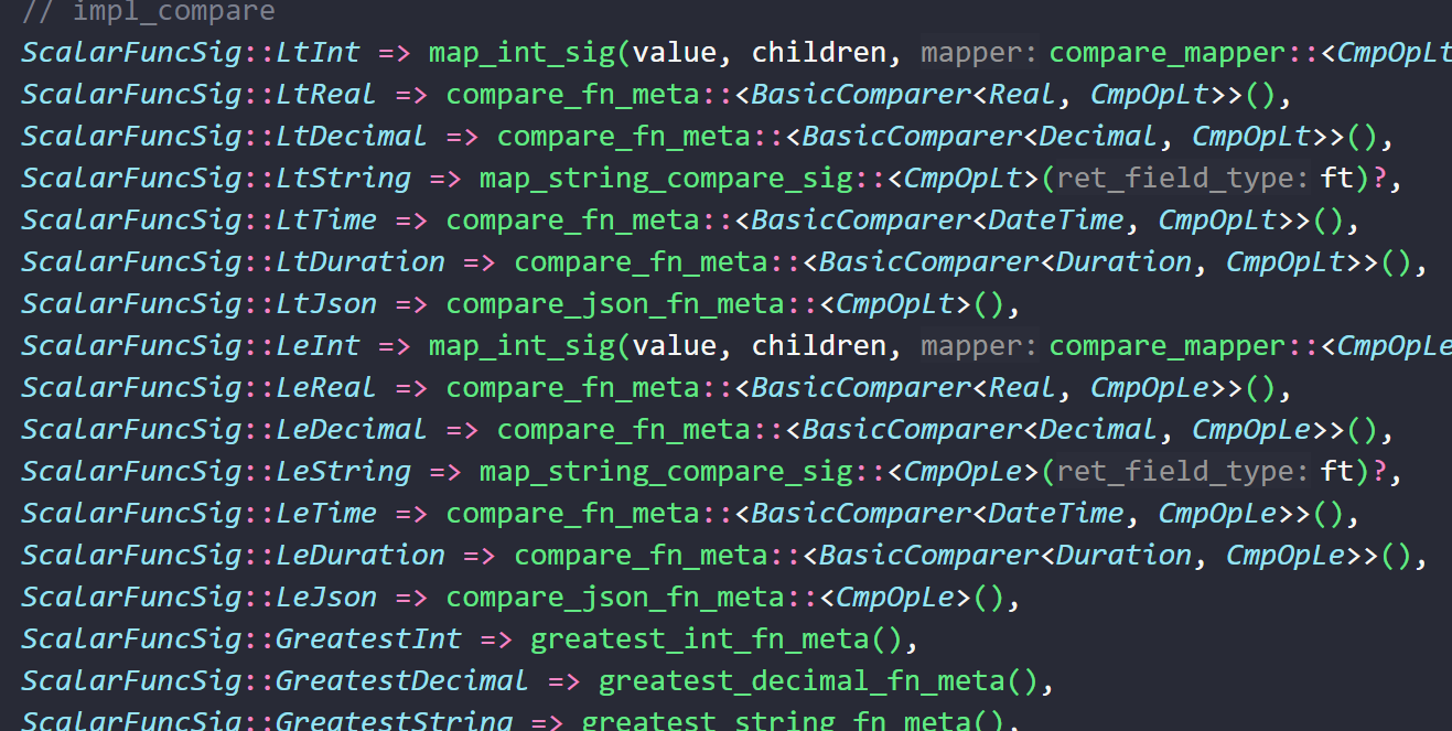 就是这个图上面的这些compare开头的函数,比如compare_fn_meta,我找不到具体在哪定义的,所以也不知道数据下推以后具体怎么调用的