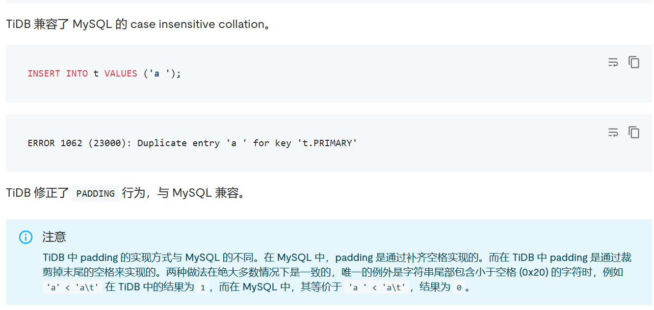 tidb字段内容尾部空格如何识别