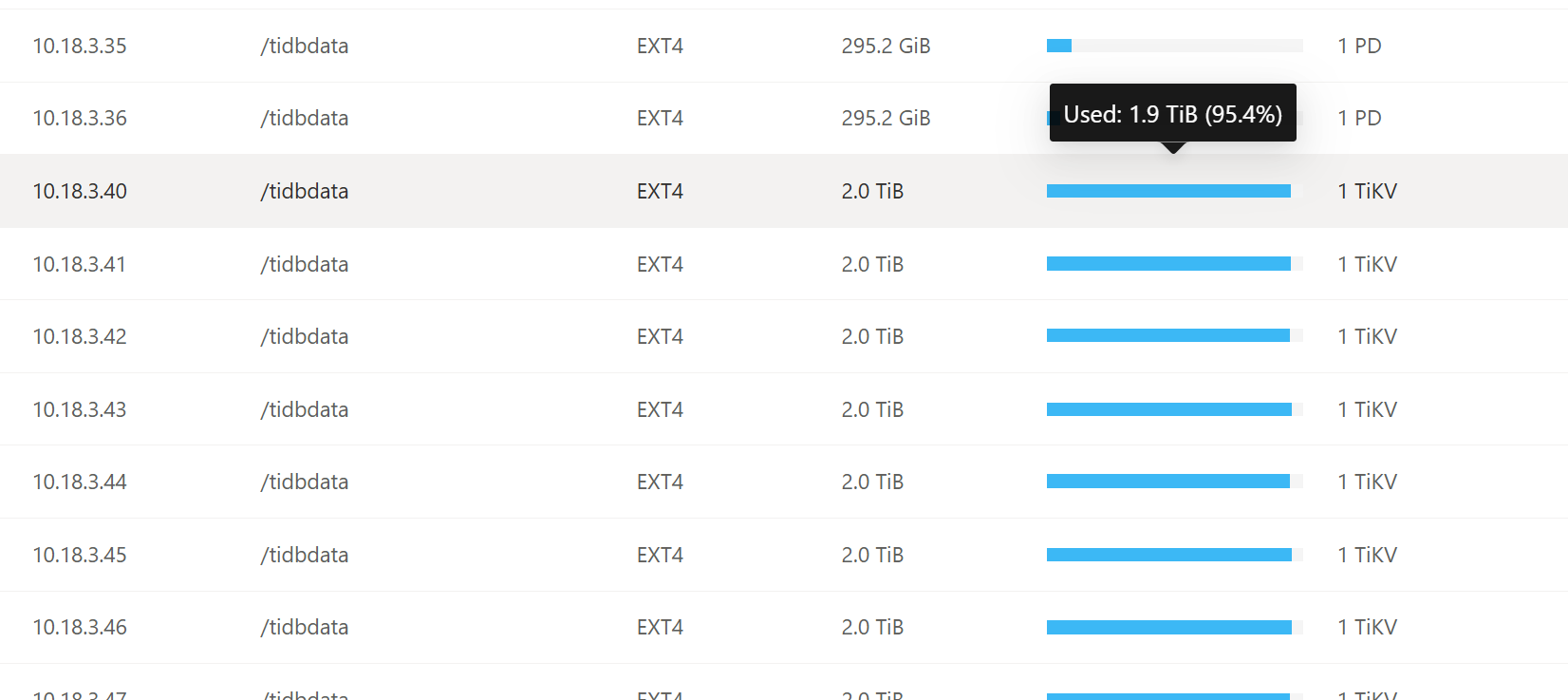基本就是满了,正常 tikv 使用不能超过 80% 的,因为底层 rocksdb 还要做 compaction 呢,给几个建议