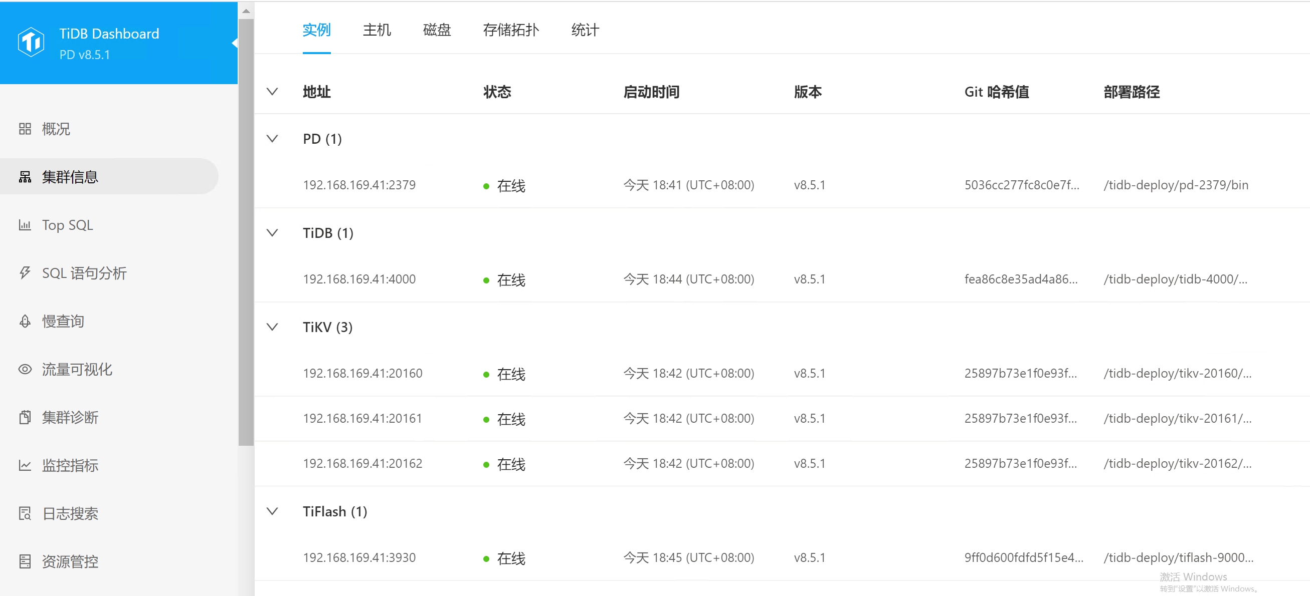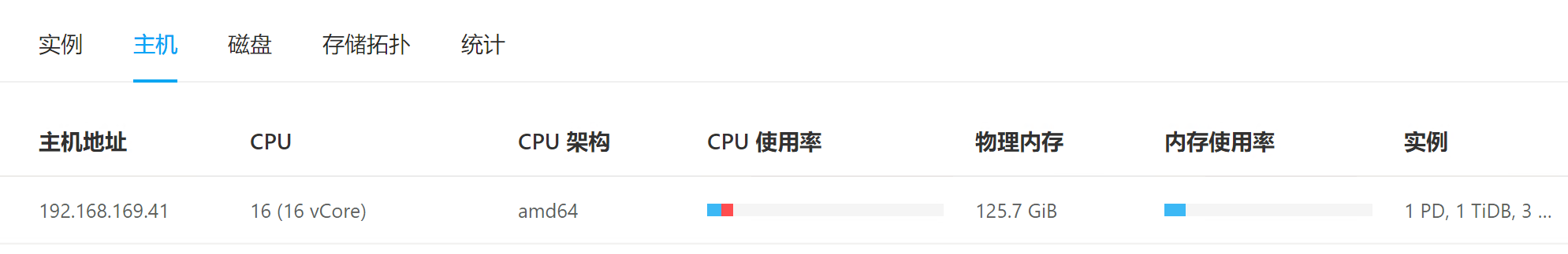 【资源配置】进入到 TiDB Dashboard -集群信息 (Cluster Info) -主机(Hosts) 截图此页面