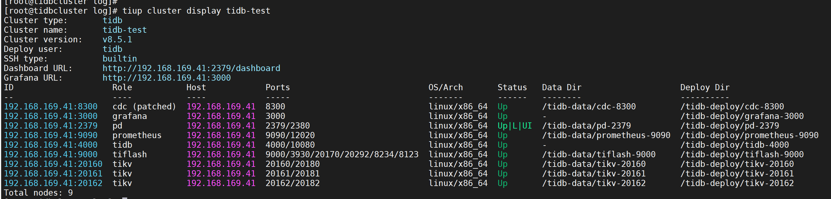 [root@tidbcluster soft]# tiup cluster reload tidb-test