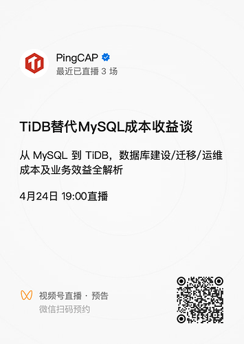 扫码预约 PingCAP 视频号直播,获得开播提醒!