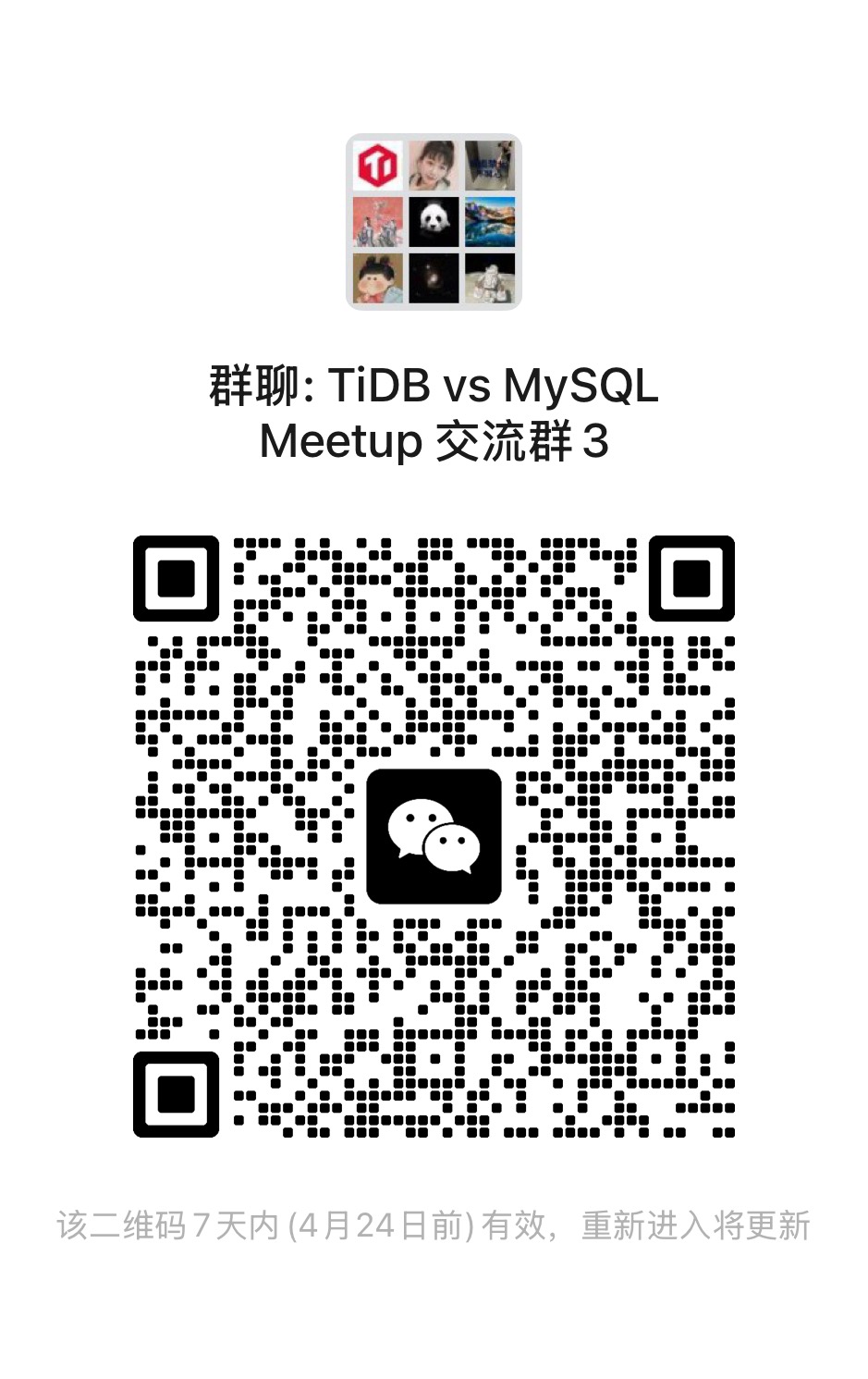 报名活动 & 加入活动微信群:4月24日 TiDB vs MySQL Meetup 报名表 - PingCAP Community Form