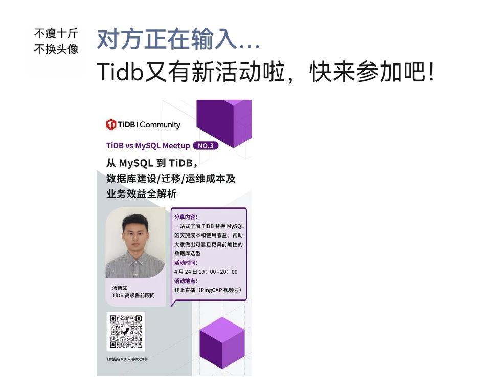 业务量及数据量的场景应该还用不到TIDB,目前生产环境也就是把非核心的业务迁移到TIDB了,其他的还是在MySQL或者Oracle上面运行,决策层面的想法还是出于运维成本的考虑,后续还是要看硬件要求。