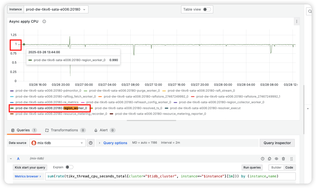 worker pending tasks 可以看到新节点卡在 apply snapshot 这一步,跟上面 region_worker cpu 繁忙是吻合的